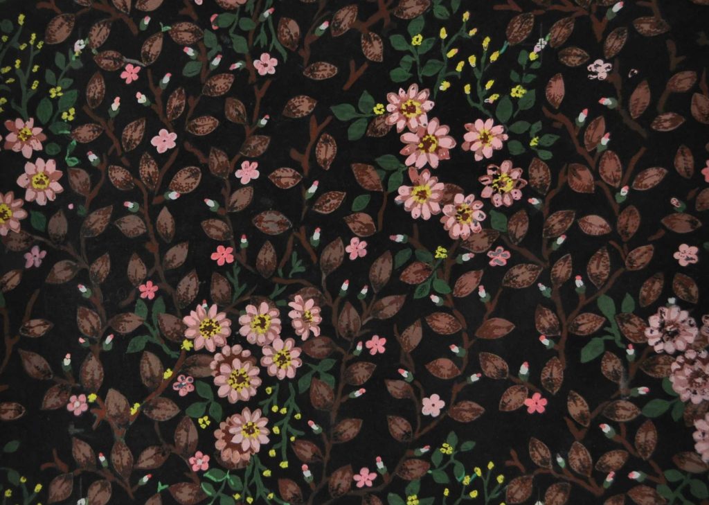 The sketches were created for printing onto fabric (for the printing department). Both natural and artificial curtain and dress fabrics were printed. The width of the dress fabric was 90 cm, while the curtain fabric was 1.50 m wide. Fabric printing was done using stencils as well as mechanical rollers.