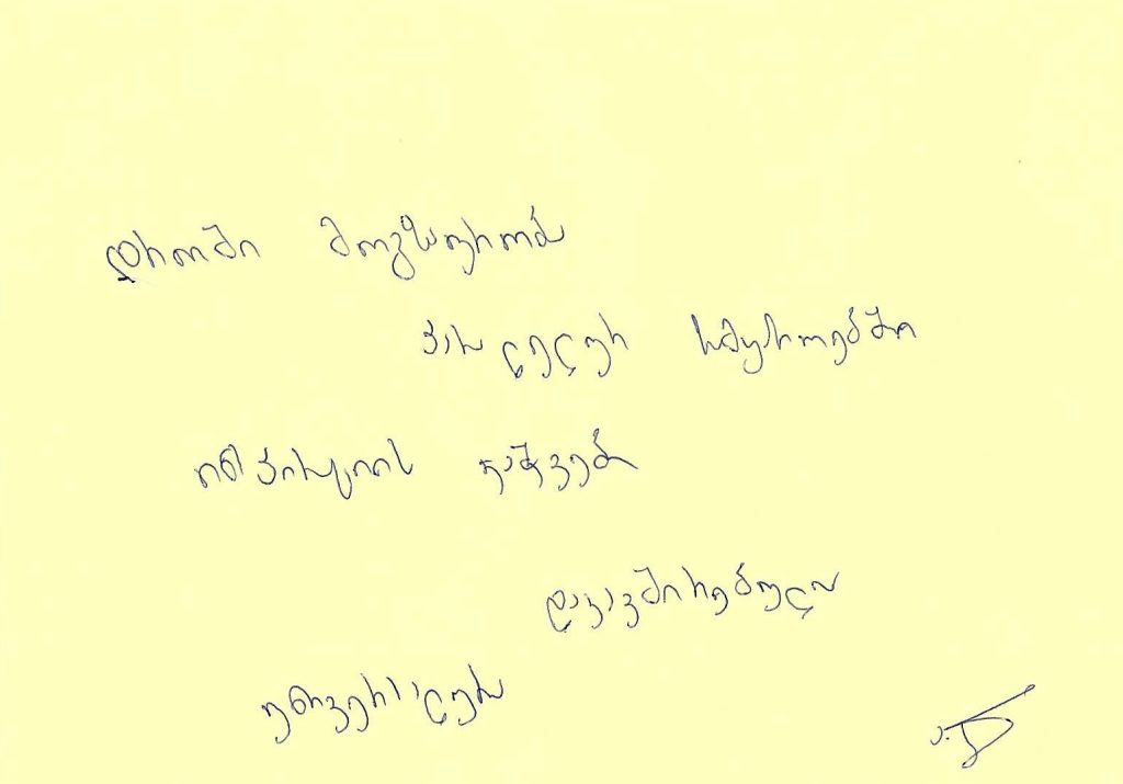 In this section, you will find selected letters from visitors, as well as postcards redesigned during the interactive meeting with Guram Tsibakhashvili.